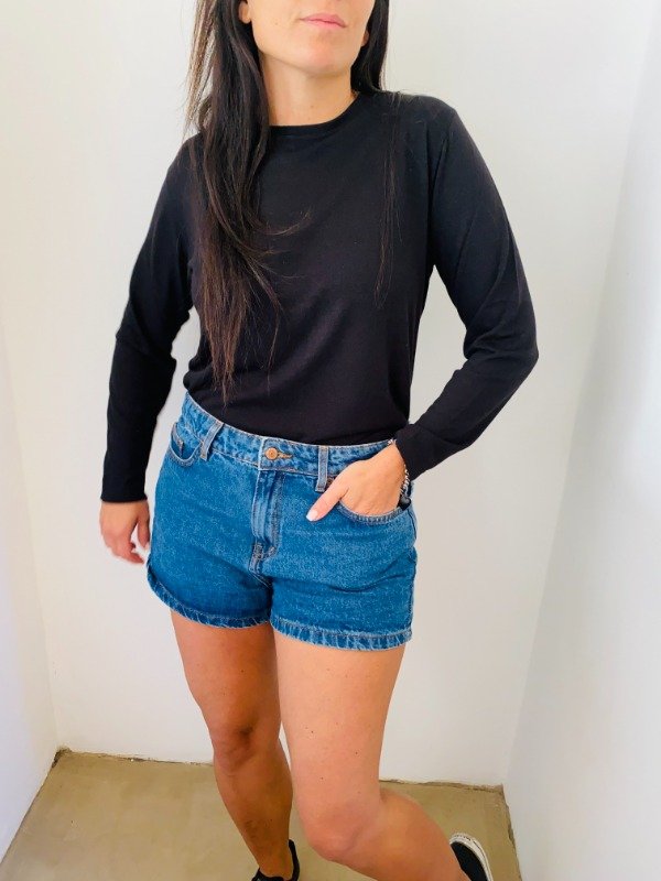 Sweater básico cuello redondo de lanilla de verano